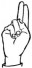 На ћирилици написано АНДЈЕЛИНА БРАТ састоји се из 13 слова [?]. Исписано ћириличном једноручном азбуком за глувонеме: